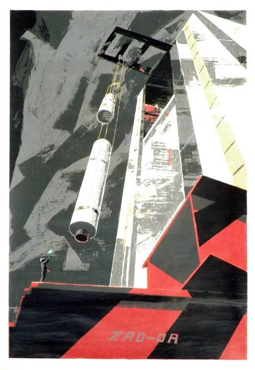吴宝贵版画9《通天塔》版画 70cm×45cm