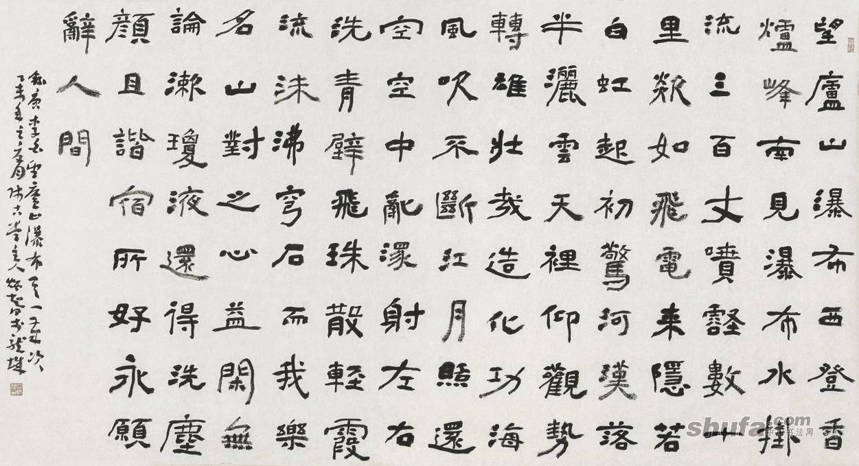 楷书;唐·李白《望庐山瀑布》尺寸:97cm×180cm