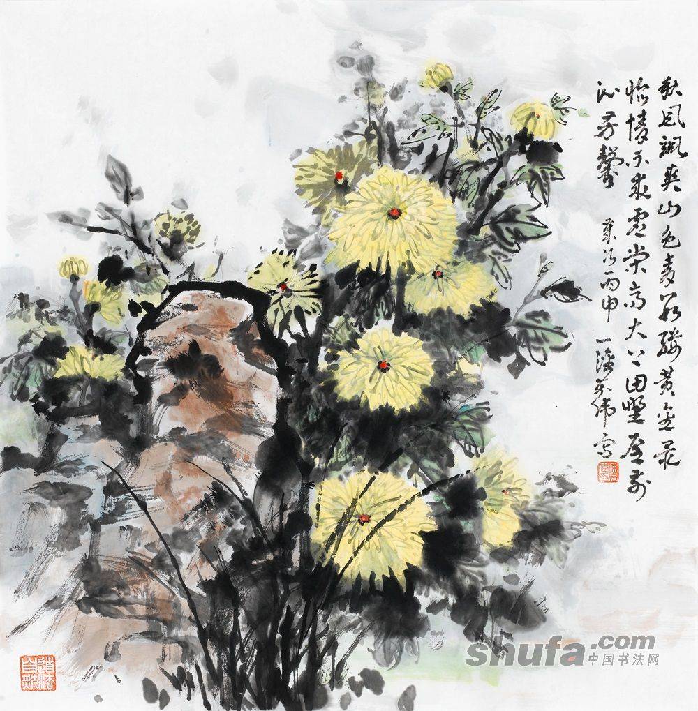 自拟题画诗释文: 秋风飒爽山色青, 数缕黄金最怡情。 不求虚荣高大上, 田野屋前沁芳馨。