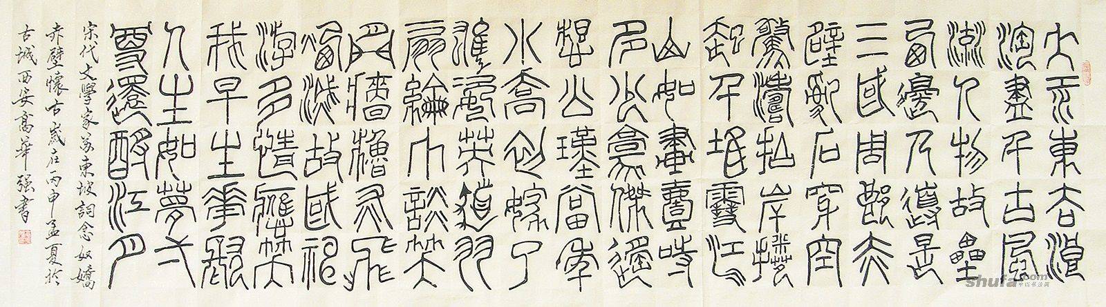 高华强篆书横幅六尺对开,宋代苏东坡念奴娇“赤壁怀古”48X180cm