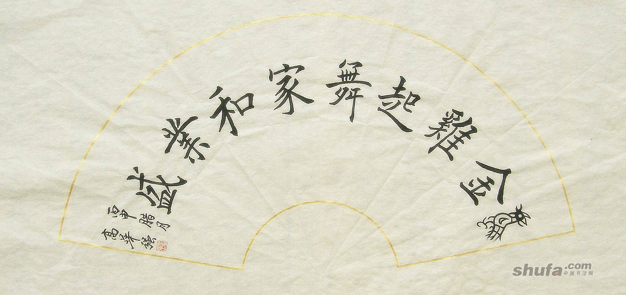 高华强楷书二尺扇面“金鸡起舞家和业盛”34x68cm