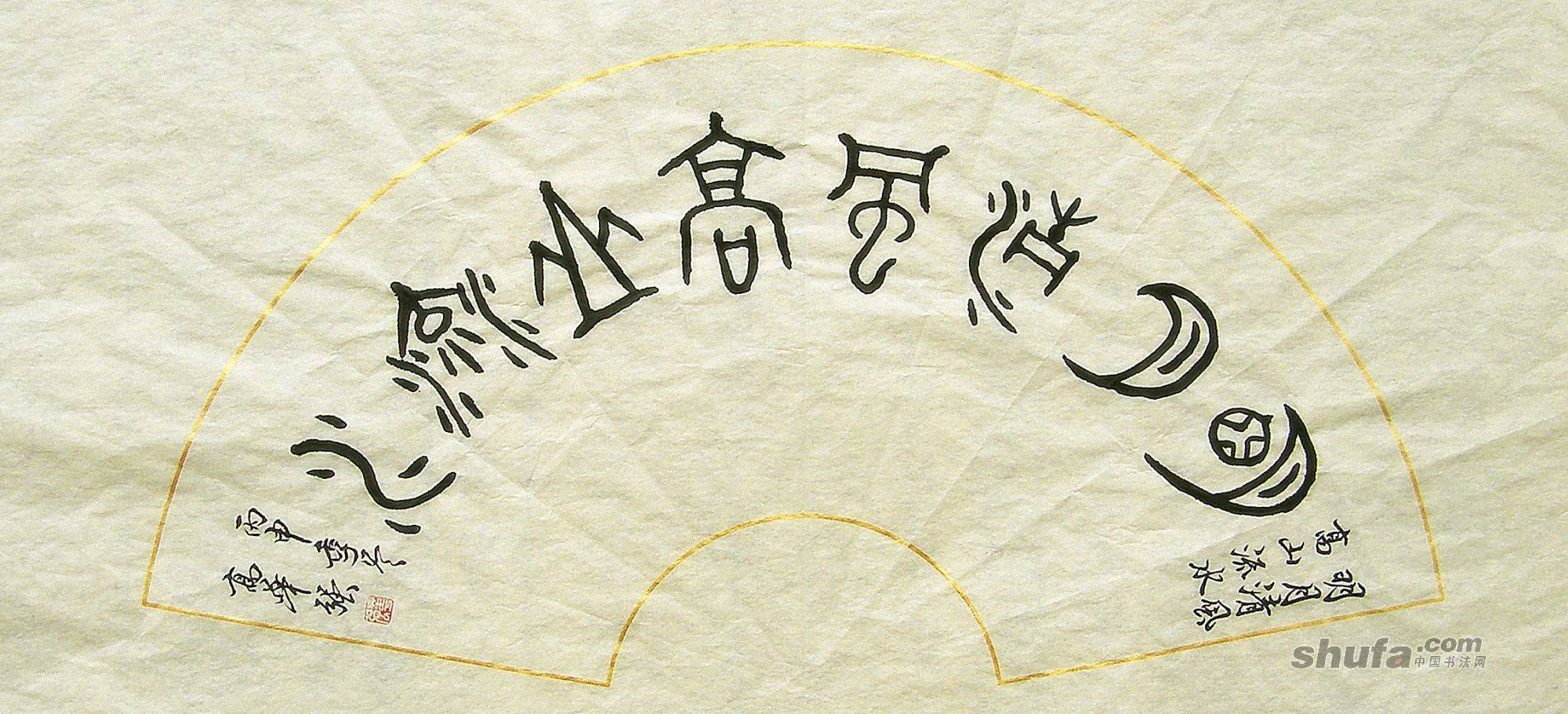 高华强篆书二尺扇面“明月清风高山流水”34x68cm