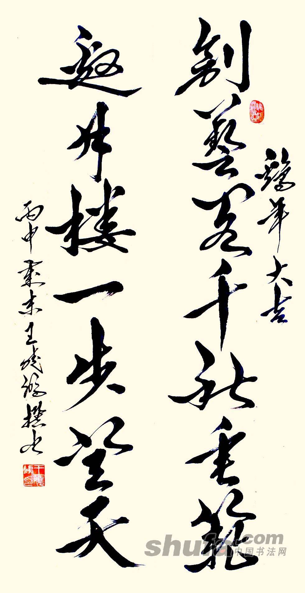 陕报王晓鹏作品,敬请点评! 创艺邀月联,原作68x136cm.释文: 创艺阁千秋垂范 邀月楼一步登天