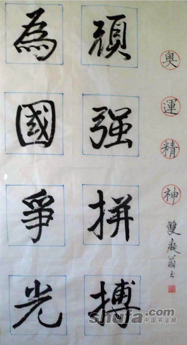 四尺楷书中堂顽强拼搏、为国争光
