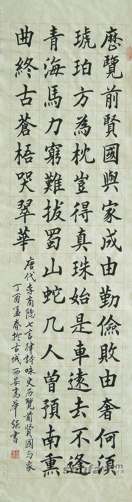 高华强楷书四尺条幅唐李商隐七律“咏史历览前贤国于家”138x34cm (2)