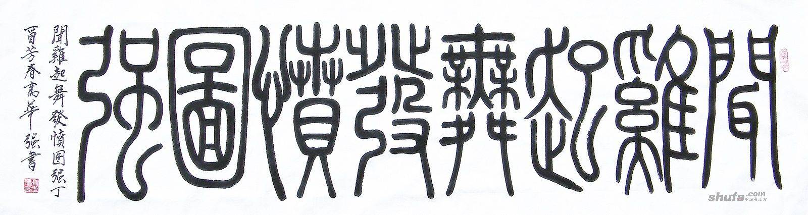 高华强小篆横幅四尺对开“闻鸡起舞发愤图强”34x138cm