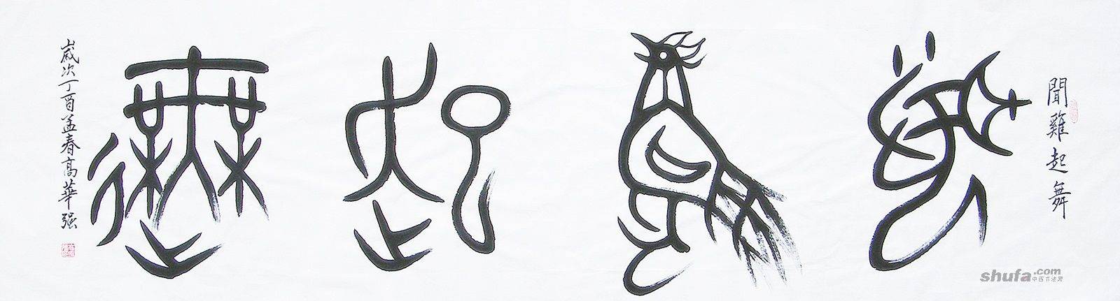 高华强篆书六尺对开横幅“闻鸡起舞”50x180cm