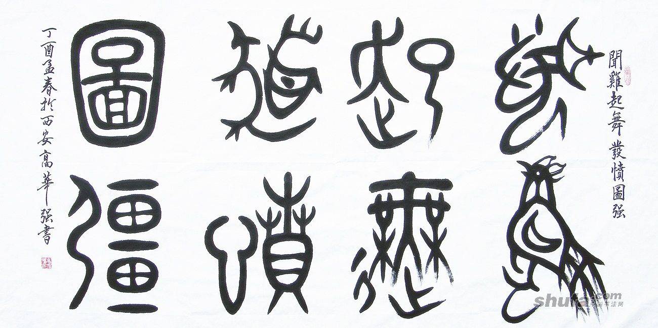 高华强篆书四尺横幅“闻鸡起舞发愤图强”68x138cm