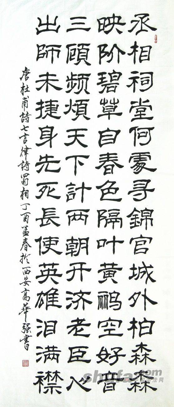 高华强隶书四尺中堂“杜甫诗蜀相”138X68cm
