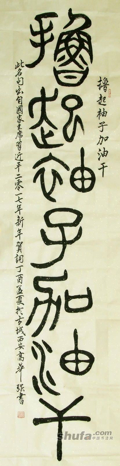 高华强篆书六尺对开条幅“撸起袖子加油干”180X49cm.
