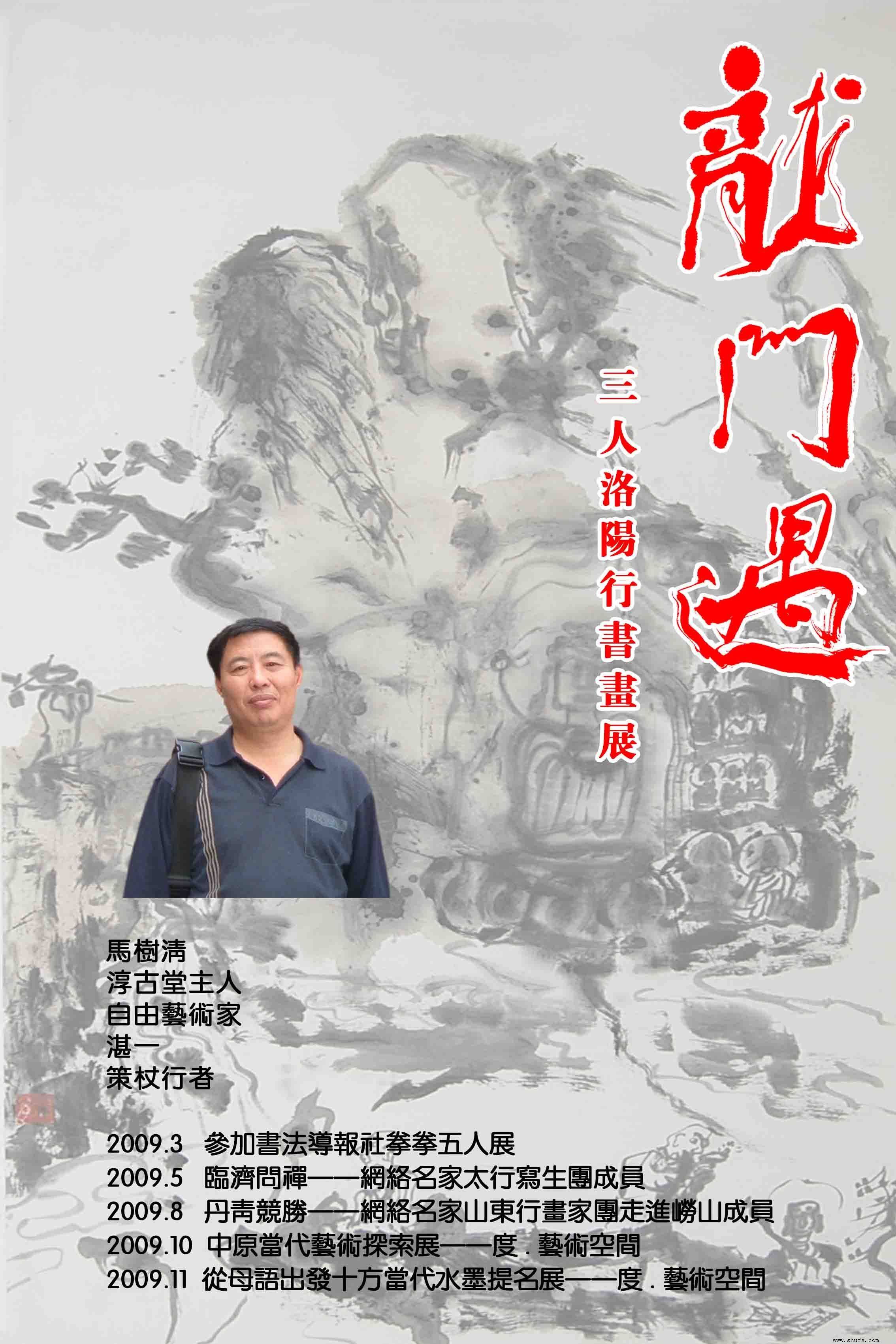 马树清,淳古堂主人,自由艺术家,湛一,策杖行者。 2009年3月参加书法导报社拳拳五人展;2009年5月临济问禅——网络名家太行写生团成员;2009年8月丹青竞胜——网络名家山东行画家团走进崂山成员;2009年10月中原当代艺术探索展——度·艺术空间;2009年11月从母语出发十方当代水墨提名展——度·艺术空间。