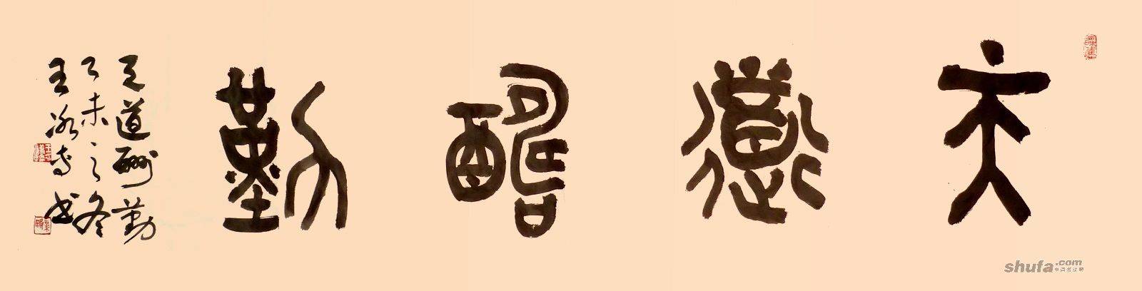 篆书横批天道酬勤6尺对开