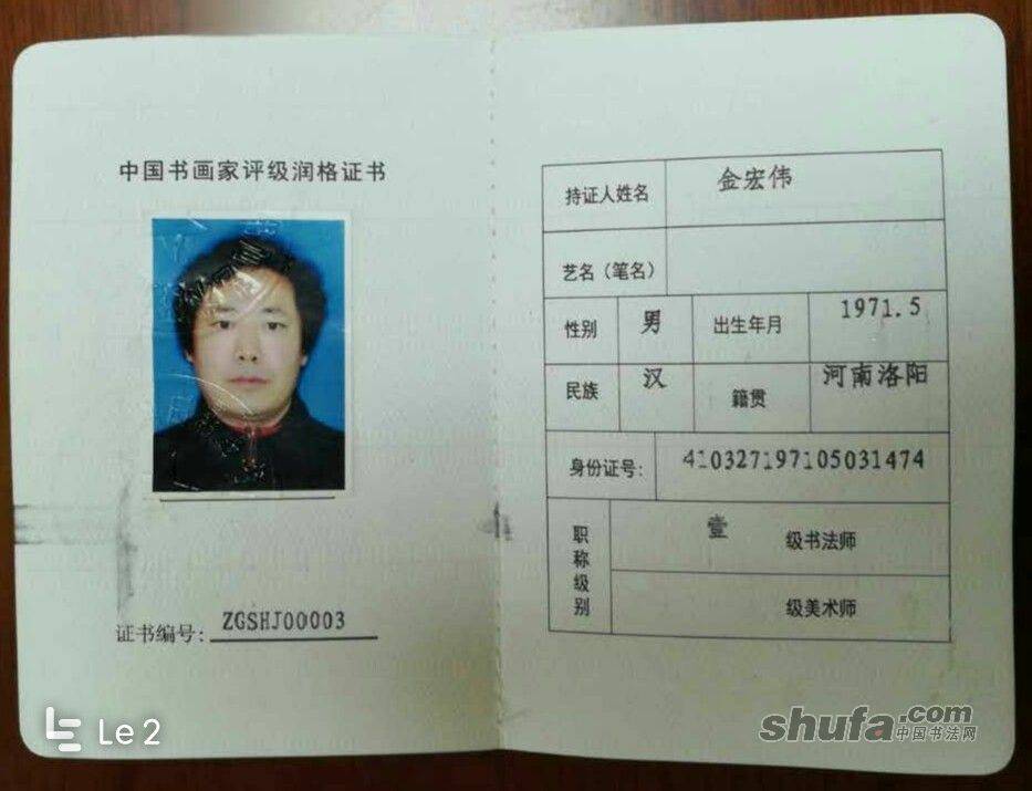 金宏伟润格证