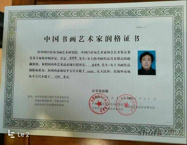 金宏伟润格证1