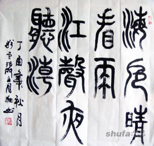 篆书:海春色晴看雨,江声夜听潮[规格:70CMX70CM]