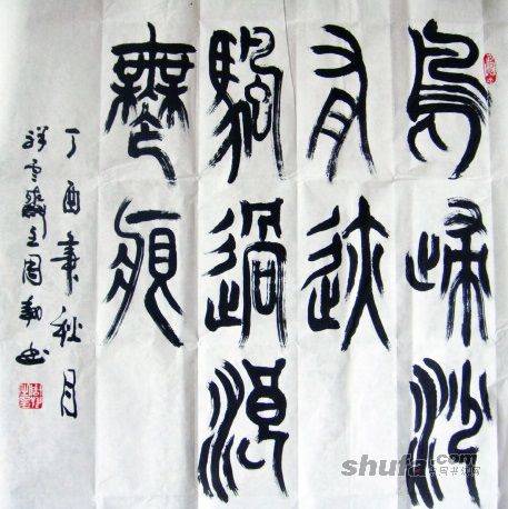 篆书:鸟归沙有迹,帆过浪无痕[规格:70CMX70CM]