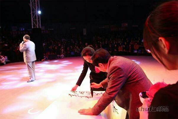 纪念毛泽东诞辰120年大会上,李志江先生演唱,张新国现场随写,曲罢书成,珠联壁合,获得满堂彩