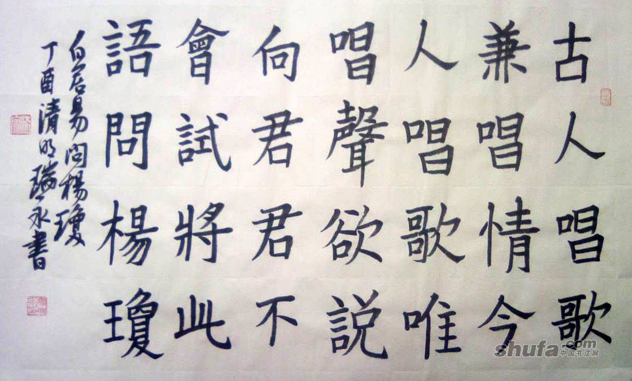 特制仿绢纸,胡开文墨锭。 释文: 古人唱歌兼唱情, 今人唱歌唯唱声。 欲说向君君不会, 试将此语问杨瓊。