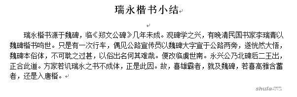 瑞永楷书小结
