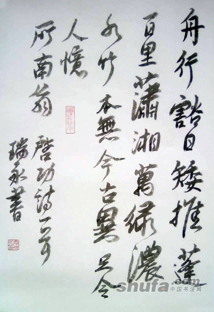 李瑞永作品,敬请点评!110作品尺寸70×46厘米,珠光云母宣,胡开文墨锭。释文“舟行豁目矮推蓬,百里潇湘万绿浓,水行本无今古异,只令人忆所南翁。启功诗一首”