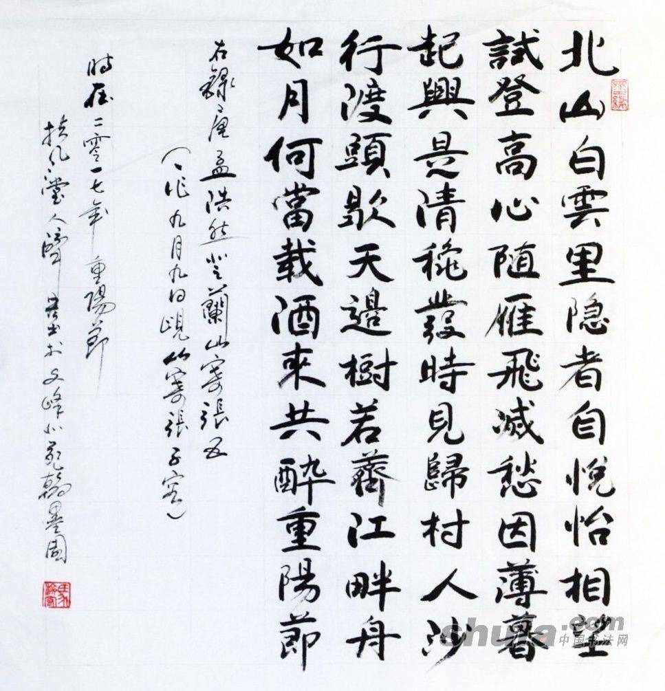 008-【行楷斗方-唐孟浩然诗-登兰山寄张五】【三尺对开】