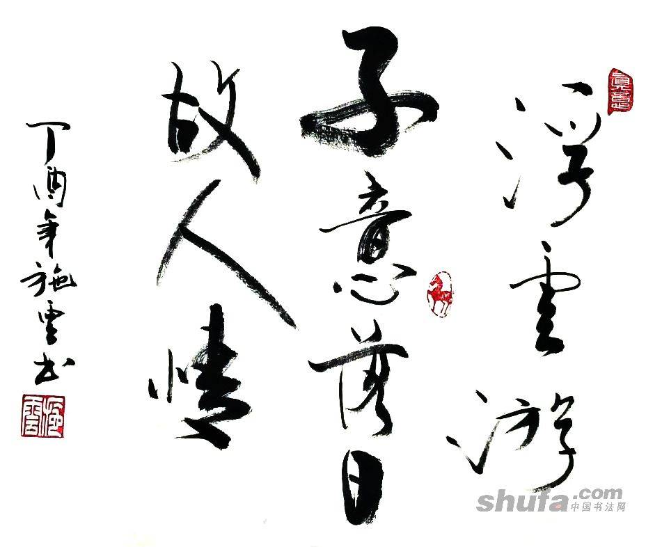 施云书法作品-浮云游子意 落日故人情
