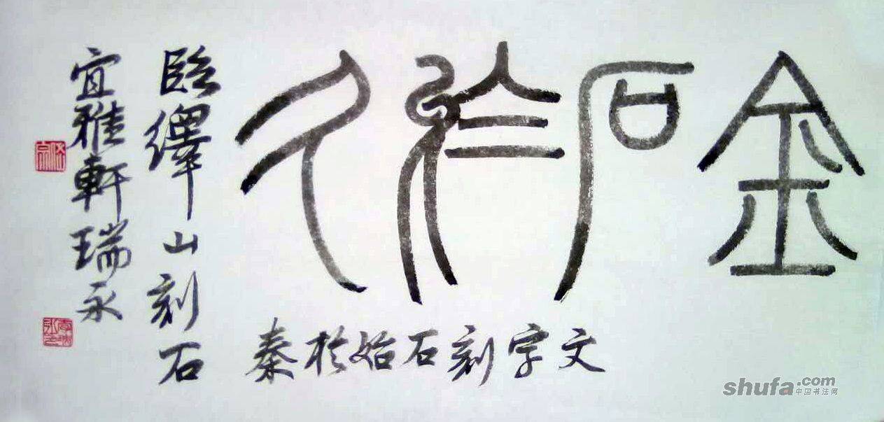 李瑞永作品,敬请点评!178作品尺寸65×33厘米。篆文“金石于久”行书“文字刻石始于秦”