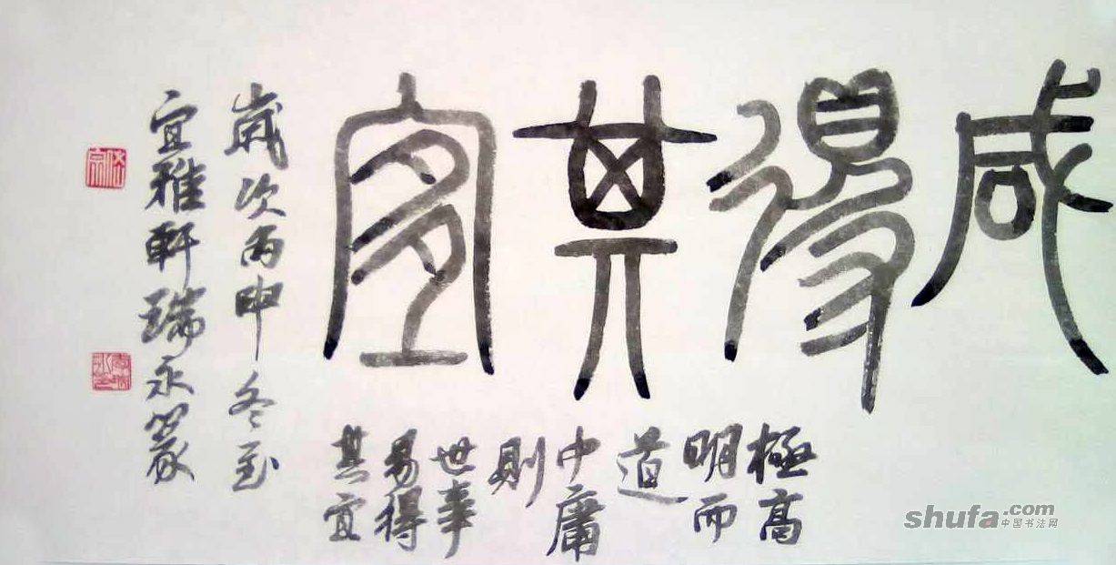 李瑞永作品,敬请点评!179作品尺寸65×33厘米。篆文“咸得其宜”行书“极高明而道中庸,则世事易得其宜。”