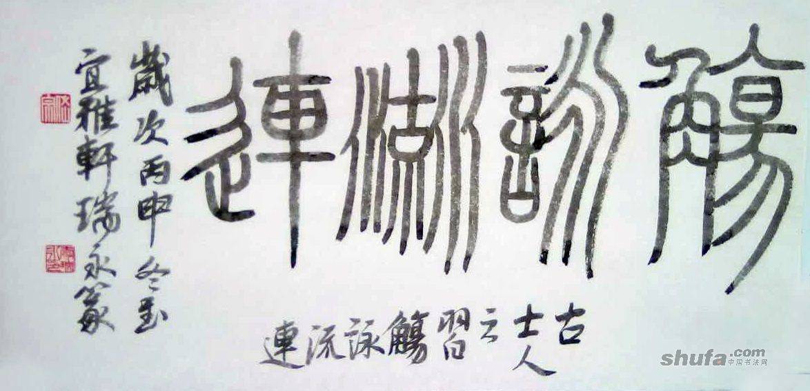李瑞永作品,敬请点评!181作品尺寸65×33厘米。篆文“觴詠流连”行书“古士人之习,觴詠流连。”