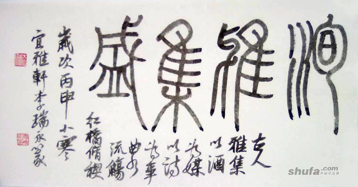 李瑞永作品,敬请点评!183作品尺寸65×33厘米。篆文“洵雅集盛”行书“古人雅集,以酒为媒,以诗为事。曲水流觞,红桥修稧。”