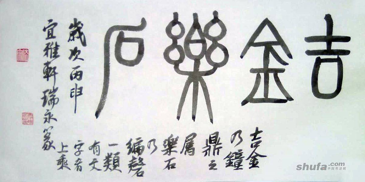 李瑞永作品,敬请点评!188作品尺寸65×33厘米。篆文“吉金乐石”行书“吉金乃钟鼎之属,乐石乃编磬一类。有文字者上乘。”