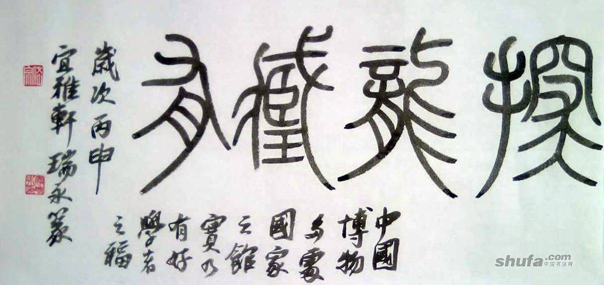 李瑞永作品,敬请点评!191作品尺寸65×33厘米。篆文“探龙藏有”行书“中国博物,多处国家之馆,实乃有好学者之福。”