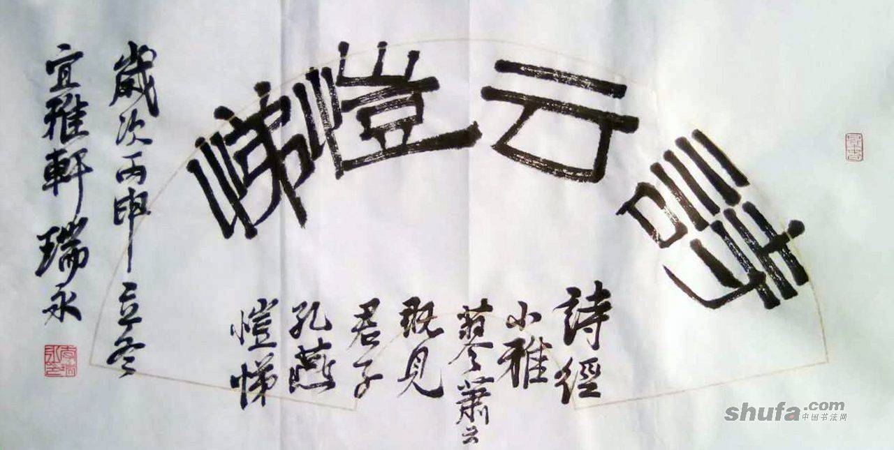 李瑞永作品,敬请点评!212作品尺寸68×34厘米。扇面内容“诗云恺悌。《诗经。小雅。蓼萧》云:既见君子,孔燕恺悌。”