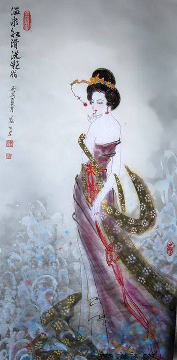 蓝世君国画温泉水暖洗凝脂