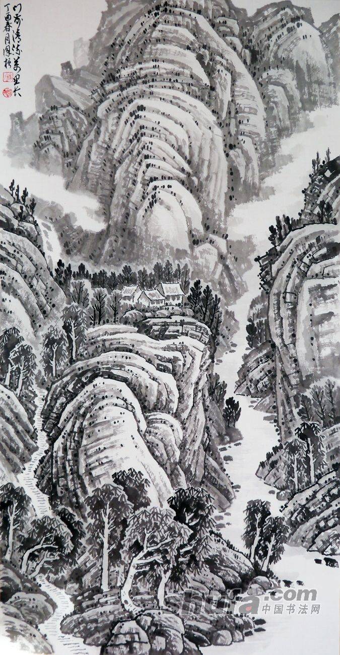 门前清溪万里长(水墨)