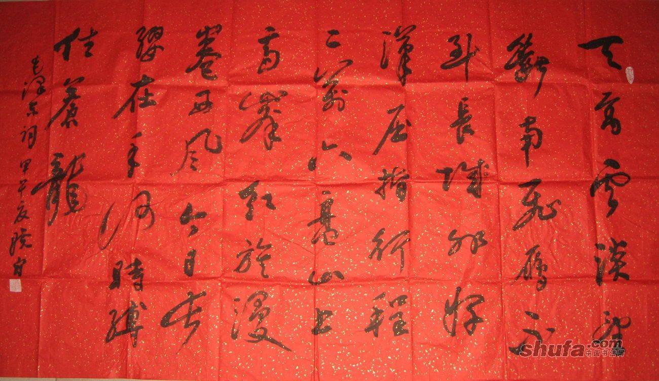 书法(行草)(甲午夏作):天高云淡甲之二(6尺整张横红纸)