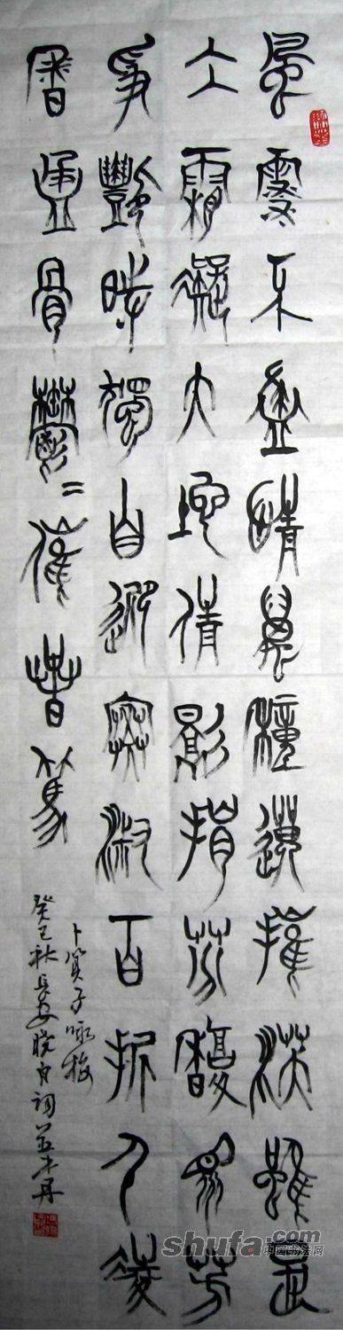 书法(大篆):(自作词)风雪不尽情(4尺对开条)