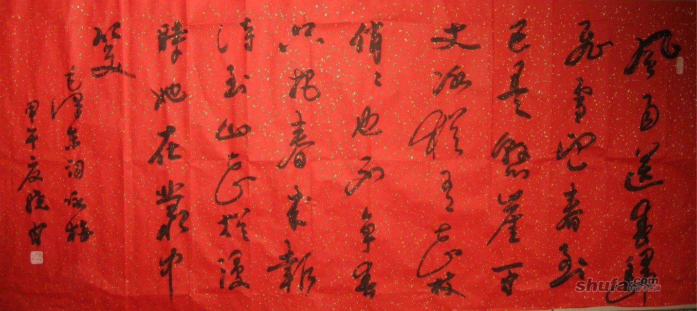 书法(行草)(甲午作):风雨送春归(6尺整横红纸)