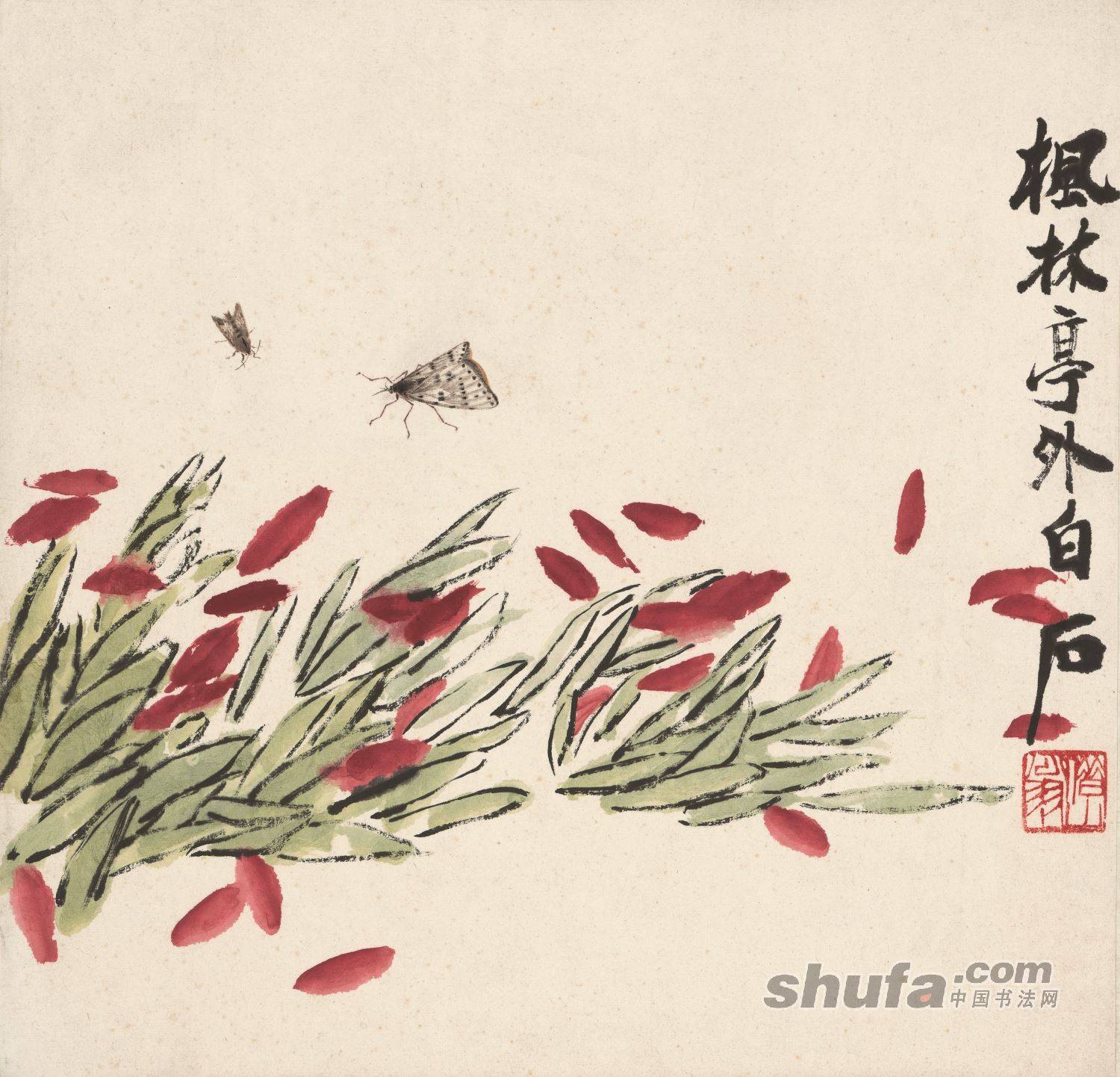 齐白石-1-花卉飞蛾图 纸本(35.56x34