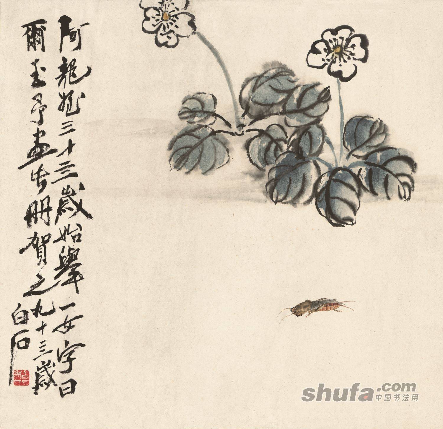 齐白石-1-花与蝼蛄 纸本(35.4x34