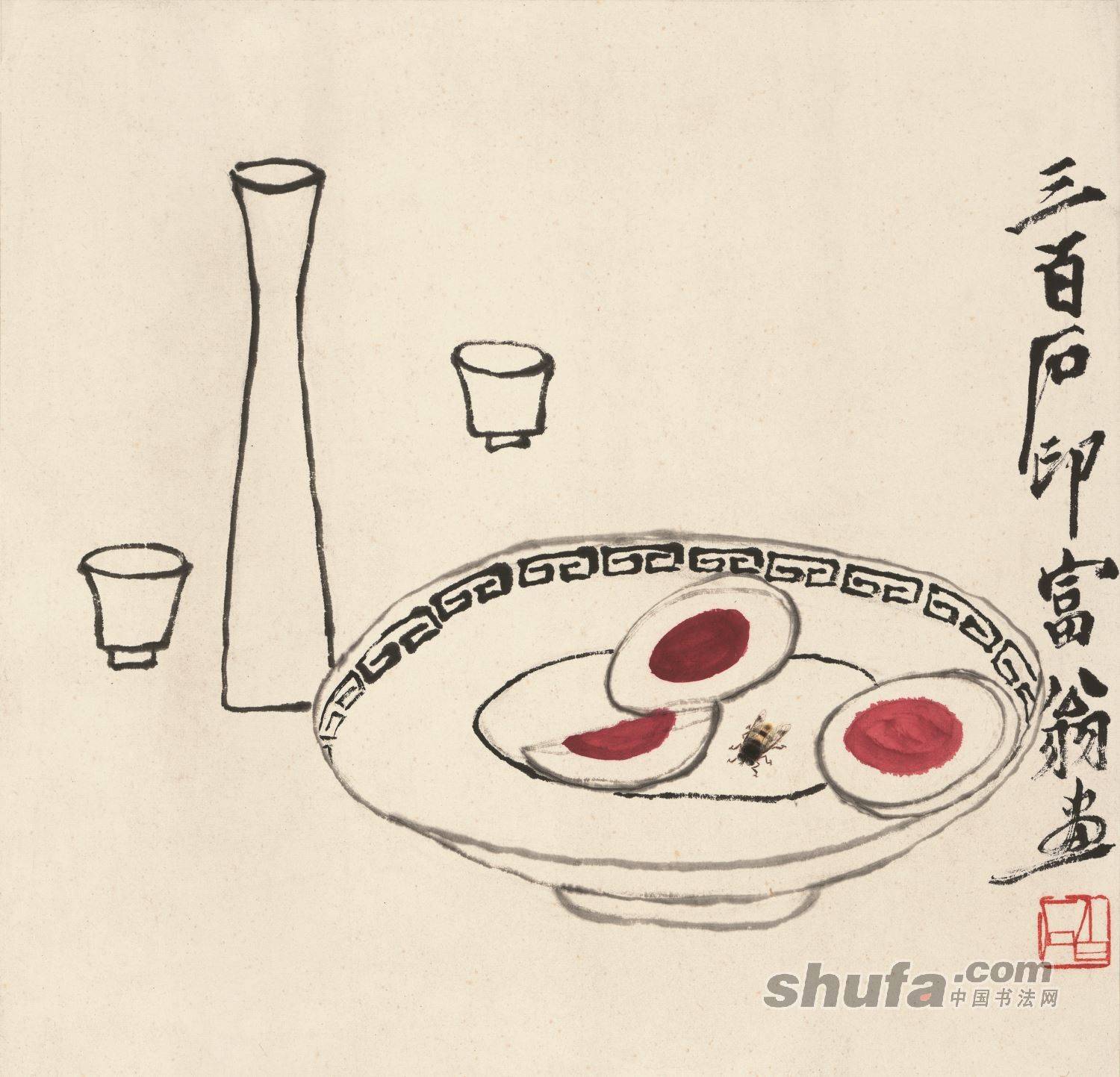 齐白石-1-蜜蜂对酒图 纸本(35.31x33