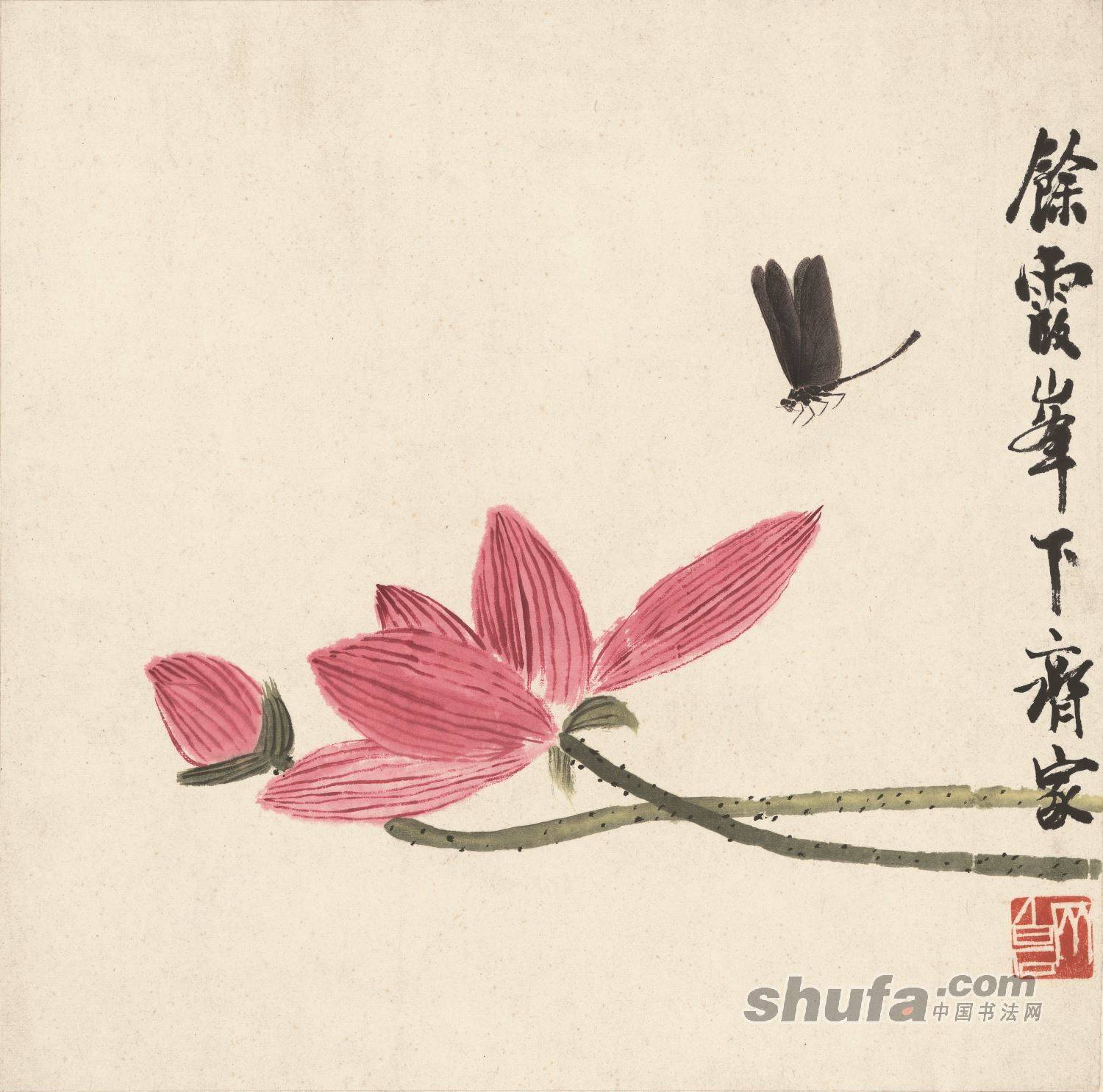 齐白石-1-蜻蜓荷花图 纸本(34.06x33