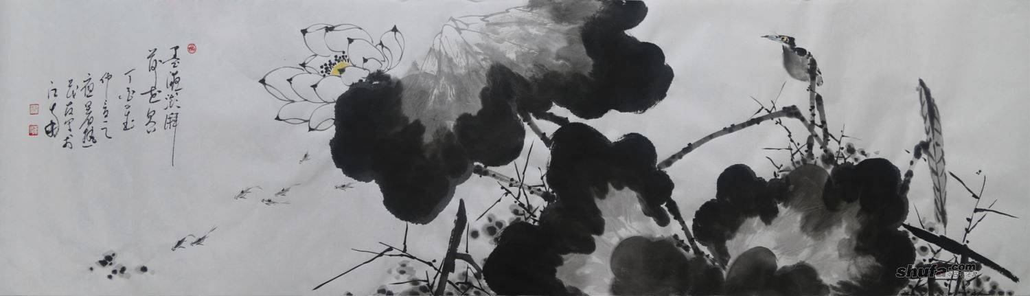 《墨液澎湃荷世界》180X47cm