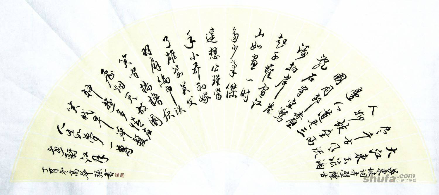 高华强二尺扇面“苏东坡念奴娇赤壁怀古”34X68cm