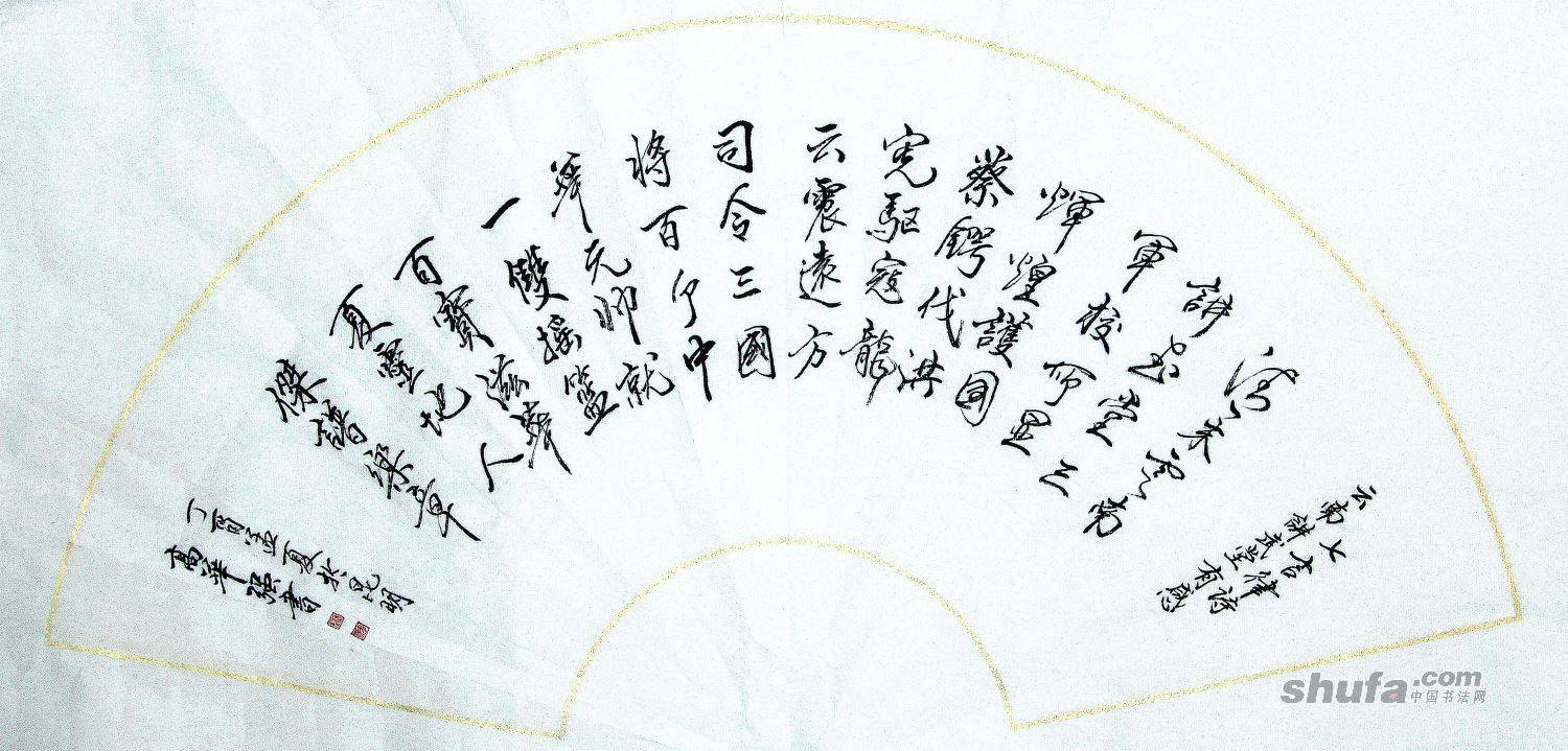 高华强行书二尺扇面“七律,云南讲武堂有感”34X68cm