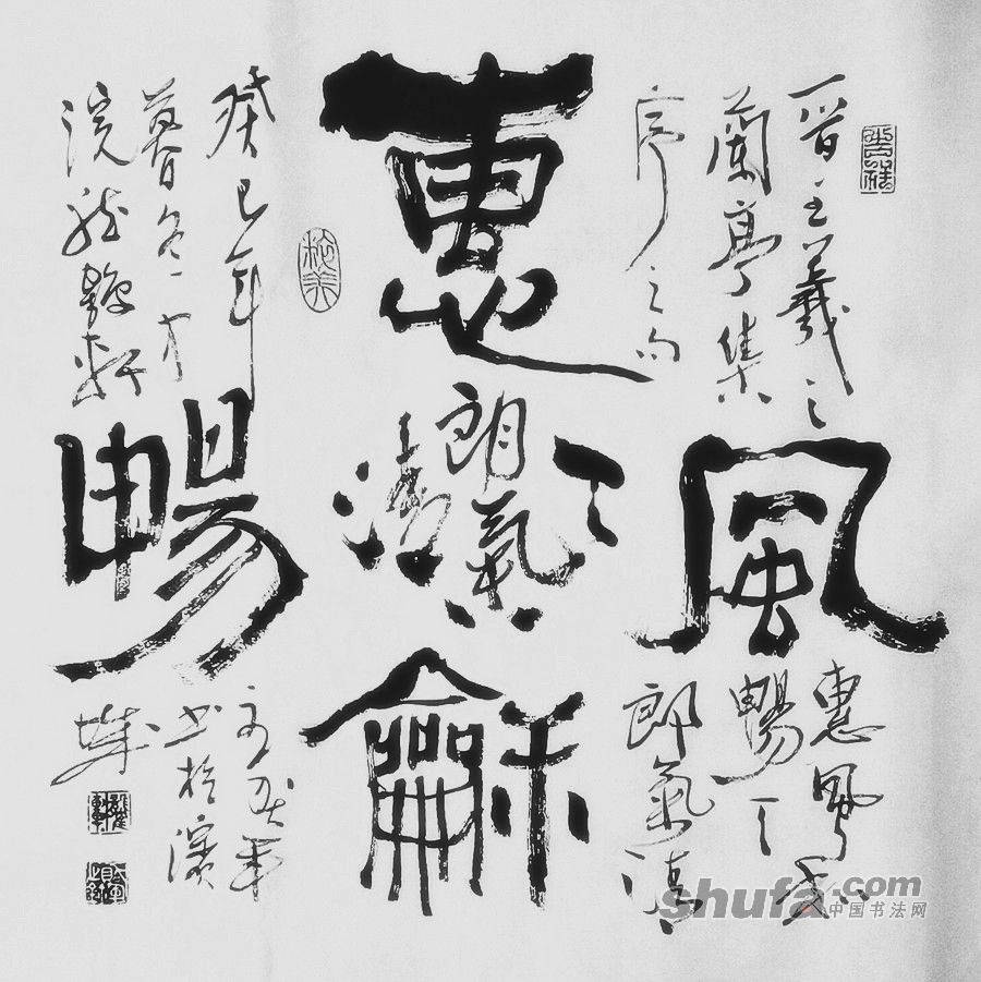 1贺军自创书写新章法之作。惠风和畅(草书、行书、隶书三体结合之作)