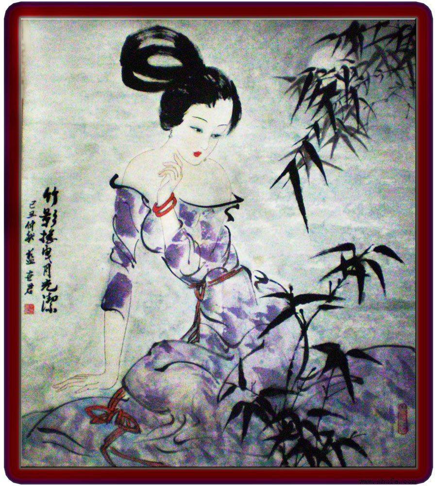 蓝世君国画竹影摇曳月光洁