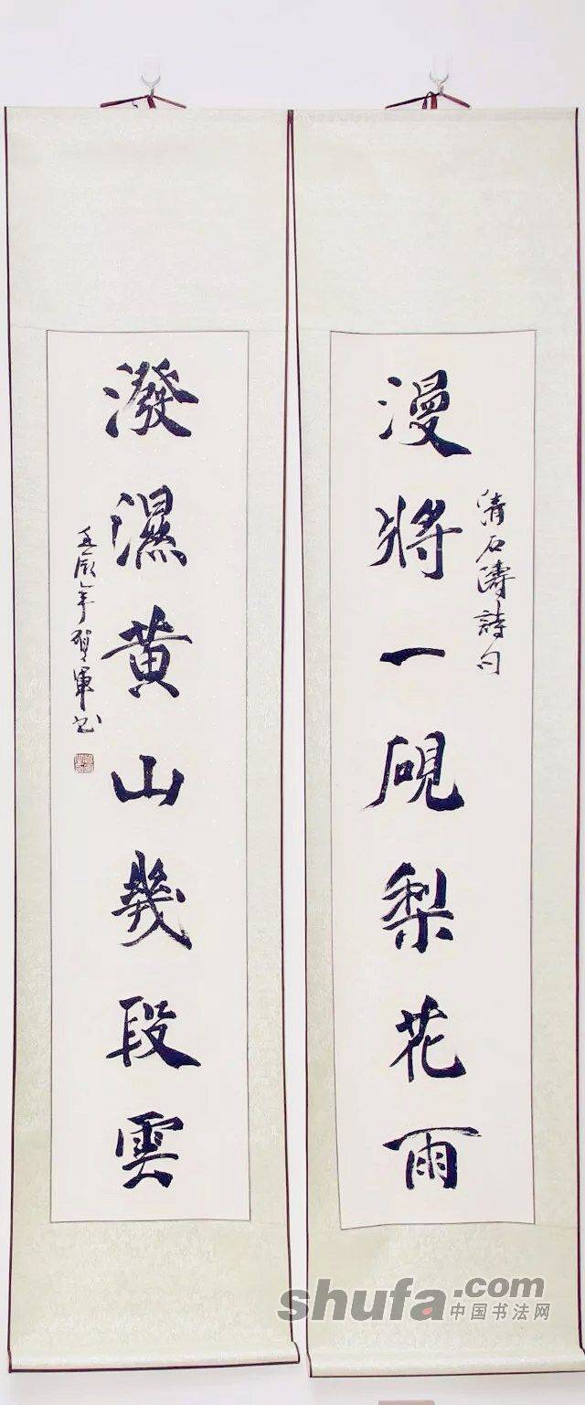 贺军书。漫将一砚梨花雨,泼湿黄山几段云。