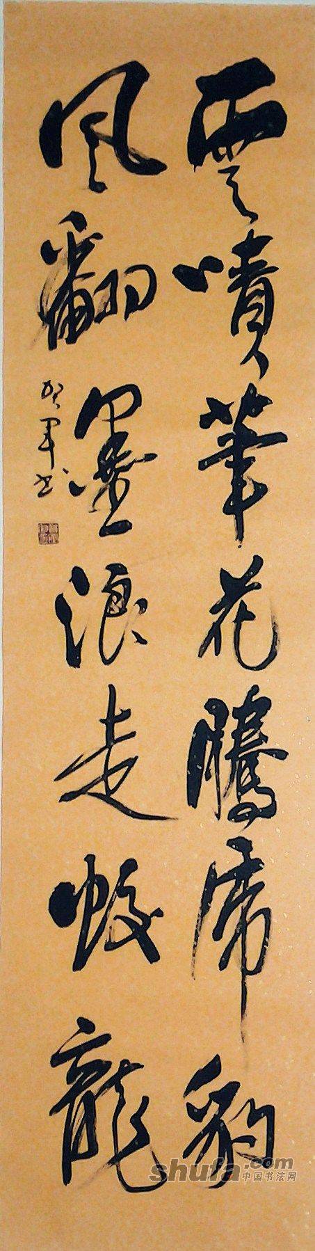 贺军书。云喷笔花腾虎豹,风翻墨浪走蛟龙。