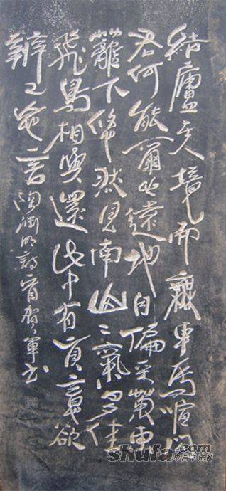 贺军碑林刻石书法。陶渊明《饮酒》。